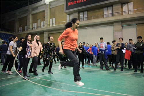 为庆祝“三八”国际妇女节,丰富教职工业余生活,促进教职工身心健康,校工会于2018年3月7日中午在世纪馆举办男人天堂