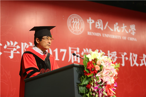 2017届全体毕业生及部分家长出席典礼。学位授予仪式由丁方院长主持。