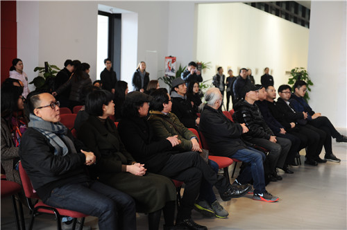 开幕仪式在当天的下午15点举行,由研究生李晶担任开幕主持人。本次展览的策展人、我院李笑男副教授首先发表讲话。随后,中国著名版画家、四川美术学院康宁教授、邵常毅教授、李仲教授、何桂彦教授、韦嘉教授,以及本次展览学术主持、我院绘画系主任王家增教授先后发表了开幕致辞。最后,参展艺术家们和嘉宾们上台合影留念。