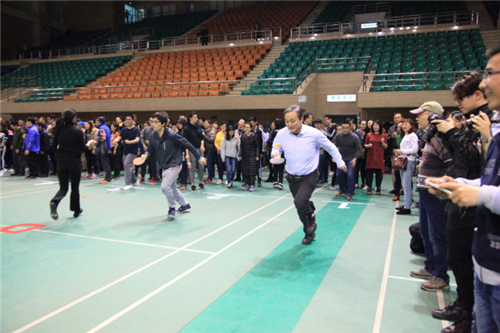 赛前教职工在别敏副书记带领下积极备赛