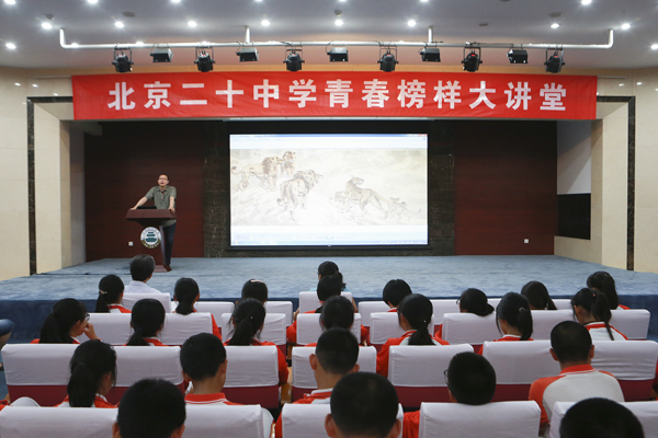 刘老师进而从自身的书法、油画、国画、诗词的创作实践出发,在对当代艺术教育现状的回顾中,引导同学们反思中西文明交融百年后的今天,当代中国文化的建设在面对西方文明辉煌成果的同时,如何重识中国文明的伟大传统。此次讲座旨在激励年轻学子为民族文化的伟大复兴而发奋读书、积极进取,受到北京二十中学师生们的广泛好评。