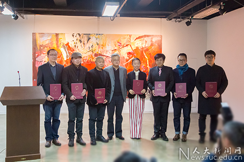 校党委常务副书记、博物馆馆长张建明为绘画作品《红》全体创作者逐一颁发了收藏证书。