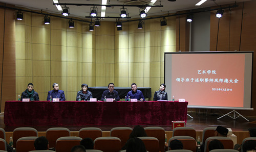 “建设世界一流大学,一流学科”的目标作出积极回应。丁院长从文艺复兴平台建设、导师工作室制度的改革和985专项资金的申报与利用等方面作了述职述廉。