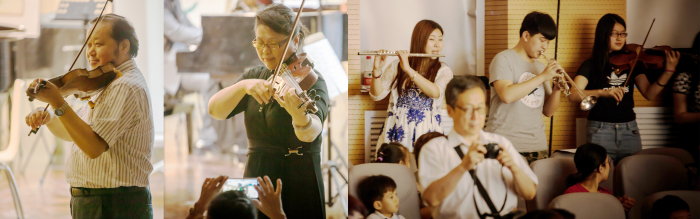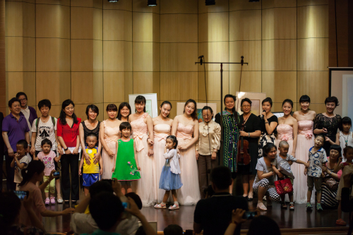 音乐会在女声小合唱美妙的歌声中拉开帷幕,曲目丰富,精彩纷呈。有罗瑞麒等同学带来的小提琴齐奏《洪湖水,浪打浪》、《快乐的女战士》,杨毅老师带来的《多情的土地》,王莹老师带来的《回旋曲》、《鸿雁》,张放老师带来的《卡门幻想曲》。特邀中国爱乐乐团知名小提琴演奏家赵婵女士前来助阵,为孩子们带来了《查尔达什》《格鲁克》,并与音乐系副主任张放、杨明明老师、王莹老师合作了《莫斯科郊外的晚上》及《一杯美酒》。在音乐会的最后,副院长赵方教授及音乐系主任王玫副教授奏响儿歌《小星星》的前两句主弦律,站在音乐厅内各个角落的同学纷纷拿出自己的乐器加入了演奏行列,声乐的同学则轻声同唱,全场音乐会在无限感动与温暖中圆满结束。