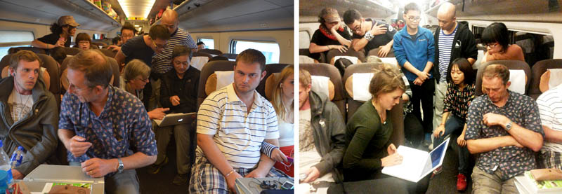 此次交流活动中,英方教授也因地设课堂,布朗教授在吴堡古城为动画专业的同学们实地讲解了摄影、摄像理念、理论以及实际应用。盖娜教授则在火车上为同学们讲解、演示了水下摄影的相关内容。动画专业的同学们感受深刻、大呼过瘾。