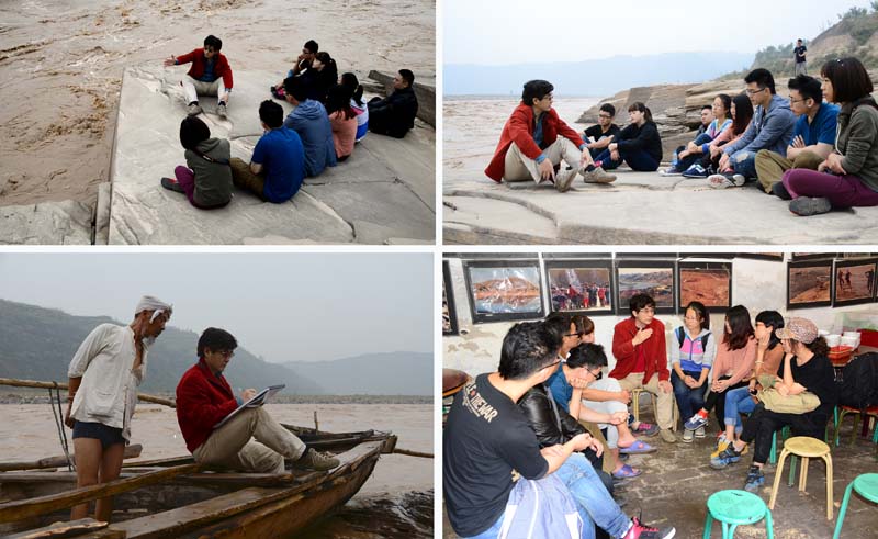 在碛口,英国学生同中国学生共同走进古镇民居,一同生活,共同体验当地的民风民俗。在教学活动中,中英双方师生一起体会了碛口黄河的激流勇进、阅读着李家山的淡雅清新、震惊于黄河画廊的浑然天成、回味了吴堡古城的历史渊源,以及壶口瀑布的力量与震撼。在此基础上,同学们根据切身的艺术体验与艺术感受,及时捕捉创作灵感,进行摄影、摄像与绘画的现场创作。