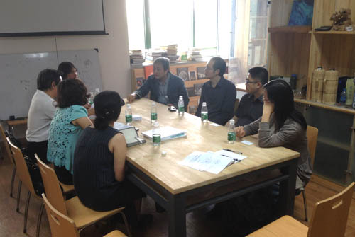 2014年5月19日下午,海南大学男人天堂 美术系主任叶仄辉教授率该院林明俊教授、张森、邓晰等教师一行来我院访问。我院设计系副主任赵前副教授、绘画系副主任刘明才副教授、青年教师陈浩波、王水清等接待并参加座谈,座谈会就两院学科建设、师资队伍、实验室建设等相关内容进行了广泛交流。,