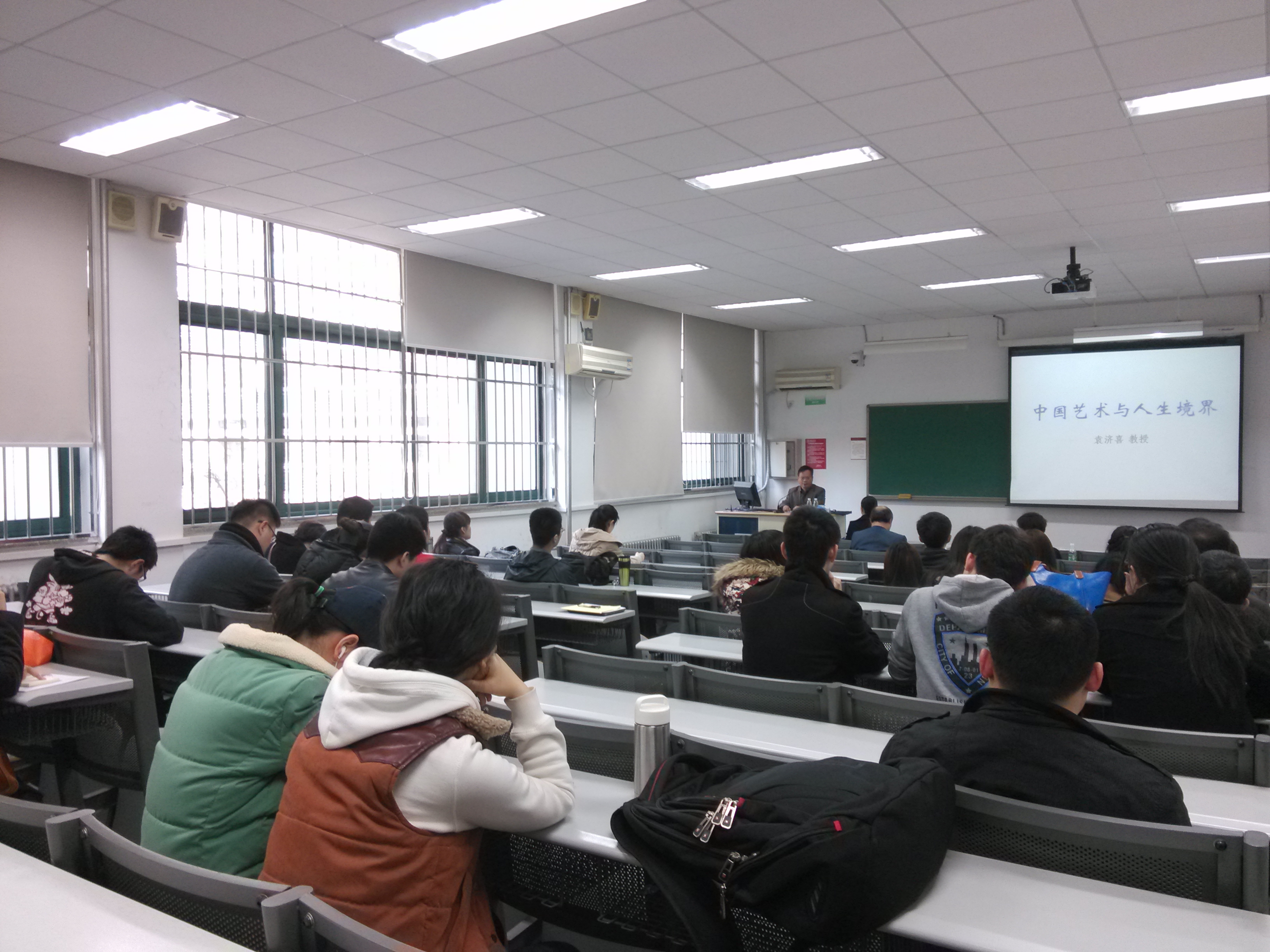 2013-2014春季学期主题党日活动暨第八期院党校第二次课程于教学三楼3102教室举办。学院师生党员及院党校学员参加了本次活动。本次活动采取了讲座的形式,由国学院副院长袁济喜教授主讲,题目为《中国艺术与人生境界》。讲座由院党委副书记别敏副教授主持。