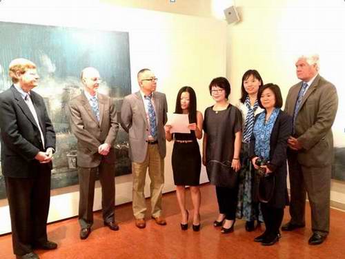 当天,执行院长徐唯辛教授与肯恩大学校方就学生互换交流、教师项目合作等问题进行了磋商,纽约华人媒体就此次展览进行了相关新闻报道。在肯恩大学美术馆馆长尼尔·塔古斯克陪同下,我院教师代表团参观了肯恩大学教学设施并与该校师生进行了深入交流。