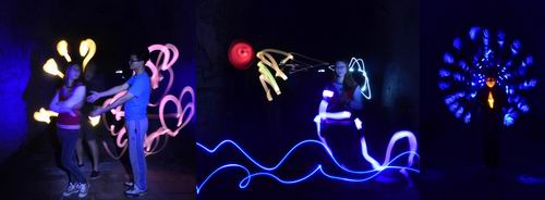 夜晚,在静谧的古镇小巷中,师生们实验光影涂鸦,在光影神秘的变化中开启思维。