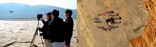 本次实践活动最值得学生期待的是以“真实的情境”代替“课堂中的视频内容”为素材,最终通过学生的二次创作,将观感用艺术的方式再现出来的教学过程。同时,以澎湃的黄河水为背景,探索高科技的航拍技术,拍摄黄河的拉纤场景。期间,考验了学生实地驾驭主题的能力,探索未来动画片新的视觉表现语言。