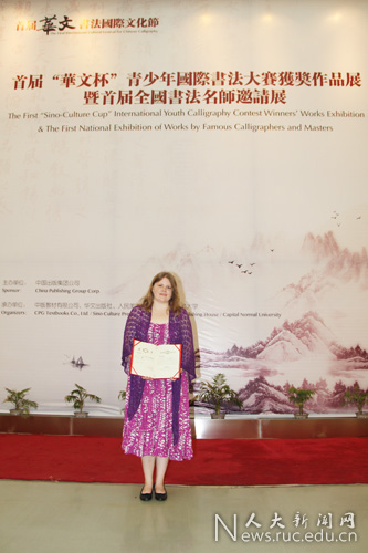 在日前举办的首届“华文杯”青少年国际书法大赛中,来自芬兰赫尔辛基大学的留学生江莎娜成为唯一获得一等奖的外国参赛者。与获奖相比,江莎娜更珍视书法带给她的那份悠然惬意,“我享受书法作品中白纸与黑墨的平衡,享受毛笔在纸上的舞蹈。”
