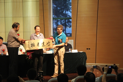 赵方、王英健副院长向三期班委颁授鸿达书社牌匾