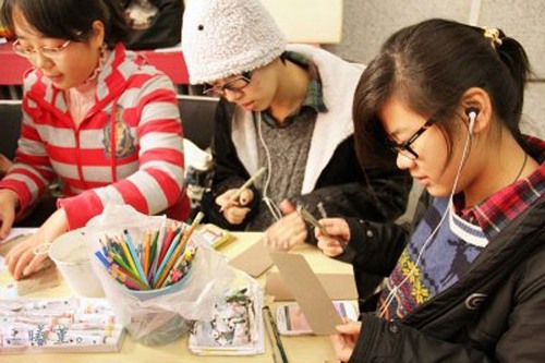 的特点,分别是“答题送礼”、“手绘书签”、“飞镖夺冠”及“夹珠前行”。期间,前来参加活动的同学对我院学生现场绘制的极富艺术特色的书签和明信片尤为亲睐,留存纪念成为了他们共同的心愿。此外,同学们对“答题送礼”这个活动也极为喜爱,他们表示题目虽然有些难度,但是丰富了参与者在绘画、设计及音乐方面的知识,为其提升艺术修养提供了很好的借鉴。在整个活动过程中,我院的展台前始终热闹非凡,吸引着众多同学前来参与。