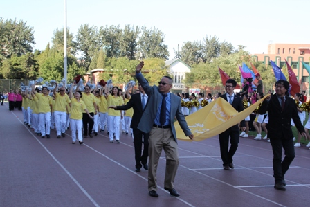 体育文化节在田径场开幕。党委书记程天权教授、校长陈雨露教授等学校领导,国际奥委会委员、国家体育总局领导及在人大就读的奥运冠军等出席开幕式。