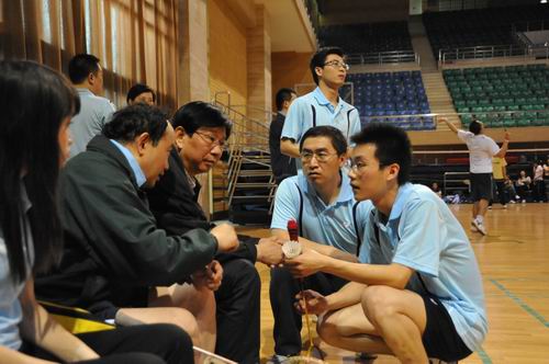 5月6日晚,由分会主席赵朝平老师担任领队的我院羽毛球参赛队员着装整齐地出席开幕式并进行了首场比赛。我院第一场比赛就被抽到与校羽毛球强队公共管理学院一队比赛。在实力强劲的对手面前,我院参赛选手毫不退缩,努力争夺每一分每一局,他们的拼搏精神赢得了在场观众的阵阵叫好。部分学院教师和学生志愿者也纷纷到场为选手们呐喊助威,极大地鼓舞了选手们的士气。在