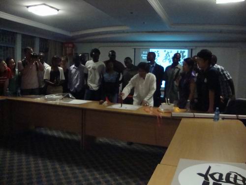 在内罗毕大学孔子学院讲座中作示范