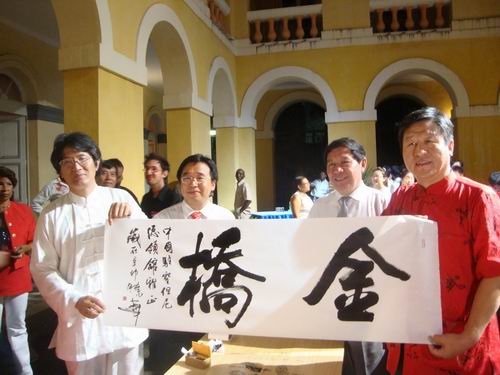 2月21日晚,演出结束后,圣但尼市政府为代表团举行专门的招待酒会,郑晓华教授现场再次挥毫拨墨,分别将其作品赠送圣但尼市政府、我驻圣但尼总领馆和留尼汪大学孔子学院。(男人天堂