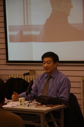 张祖英先生首先分析了中国油画发展的现状,指出了当代油画市场中存在的问题,对青年艺术家如何正确看待艺术市场,做出了导向。他强调中国艺术家应该具有创造和进取的精神,注重对油画绘画性的研究,形成独特的艺术视角,实现写实油画现代化的转型。其次,张先生就中国油画如何与时俱进的问题提出了自己的观点,他认为,当代性首先是个认识问题,中国艺术家只有对当代社会有深入的了解,切实体察社会状况,寻找到新的视觉经验,才能表现写实油画的时代感,并且具有中国文化精神的底蕴对中国油画的发展也是至关重要的。最后,张先生放映了一些具有时代感的写实油画作品并分析了其创作过程及理念。