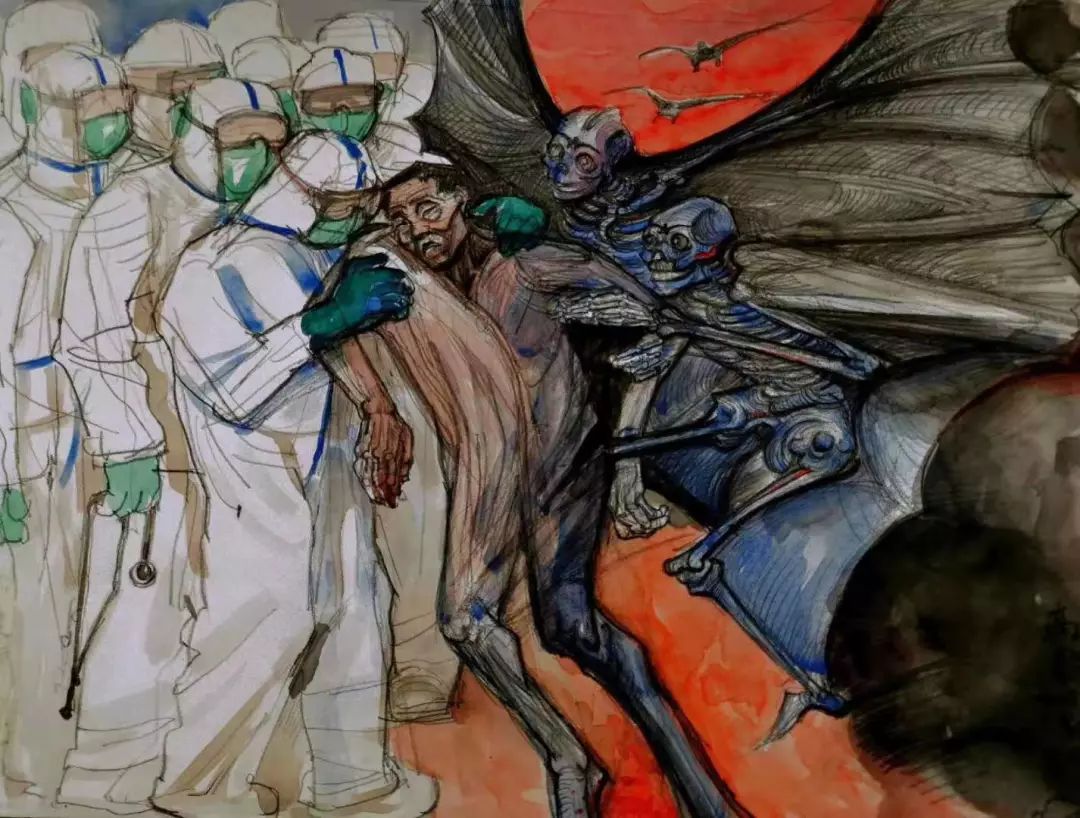 人类与病毒博弈由来已久,在拥有现代文明的今天,面对吞噬人类不断变异的死亡病毒,在感动于众志成城时代英雄的同时,是否更应该思考所种之“因”,而不是对现在的“果”充满了恐惧与无助。创作于汉堡的《死亡之役》,邪不压正,为祖国加油,此战必胜!