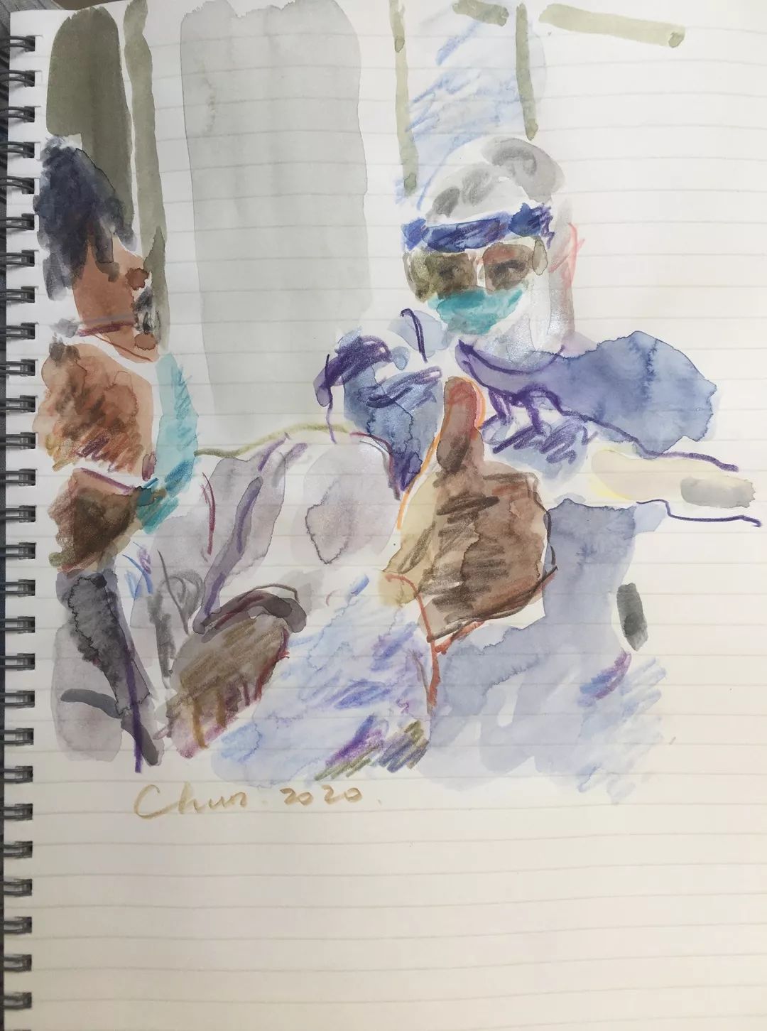 在瘟疫面前,我想每个人都是恐惧的,包括那些医务人员。但他们能够顶住各种压力,冲在救治伤病的第一线,与死神抗争,他们身上表现出的那种勇气和责任心,让我由衷地敬佩。对于守候在重症监护室外面的人来说,所有的希望都寄托在这些医护人员身上,这一刻,他们真的就是天使……