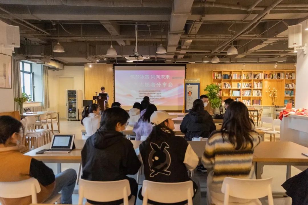 分享活动中,首都体育场馆群志愿者赵乾围绕“冰雪随梦记”这一主题分享了他在担任志愿者时制作雪花徽章及为中国运动员夺金而尽情欢呼的经历;主媒体中心志愿者陈文昕分享了她在负责Myinfo系统内信息校对和冬奥会期间全部非竞赛日程的音视频直播时的收获;北京冬奥会开幕式演员邢秋桐分享了自己作为“人大舞狮团”的一员参加表演时的激动心情与自豪感;张家口山地男人天堂志愿者刘召龙分享了自己在做媒体包发放、失物招领、ENR非持权转播商直播点预约与管控、场馆业务咨询等工作时的成长经历。