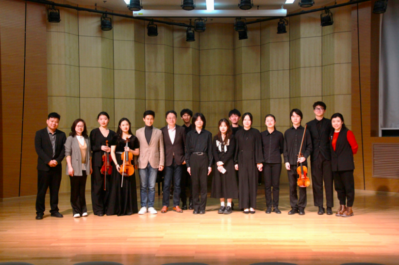 副院长齐悦,音乐系主任刘洁,管乐教研室主任王深,弦乐教研室主任也是本次比赛与音乐会负责人王莹,声乐副教授杨明明,以及特邀的上海四重奏创始成员之一、著名中提琴家李宏刚教授等一同出席了音乐会。