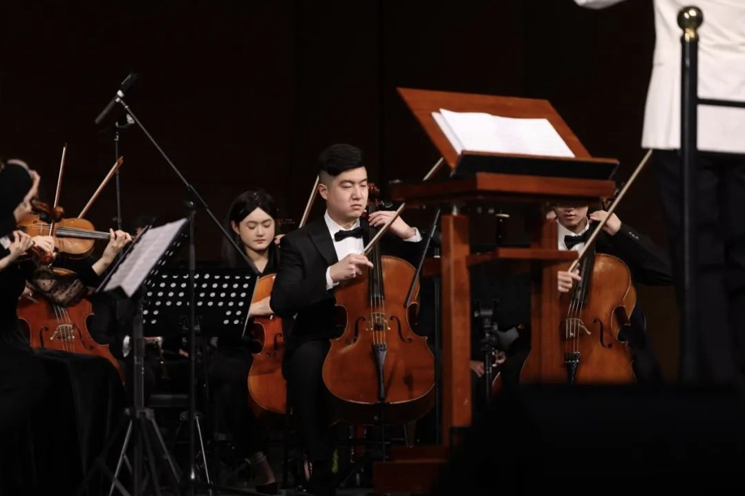 青年管弦乐团,共同呈现了《鸿雁主题随想曲》。大提琴深沉而悠扬的旋律与乐团的细腻交织形成了一场音乐上的“对话”,作品在苍茫的草原旋律背景下,展现了音乐与大自然、情感与景致之间的和谐共鸣,为听众带来了一次深刻而难忘的音乐体验。