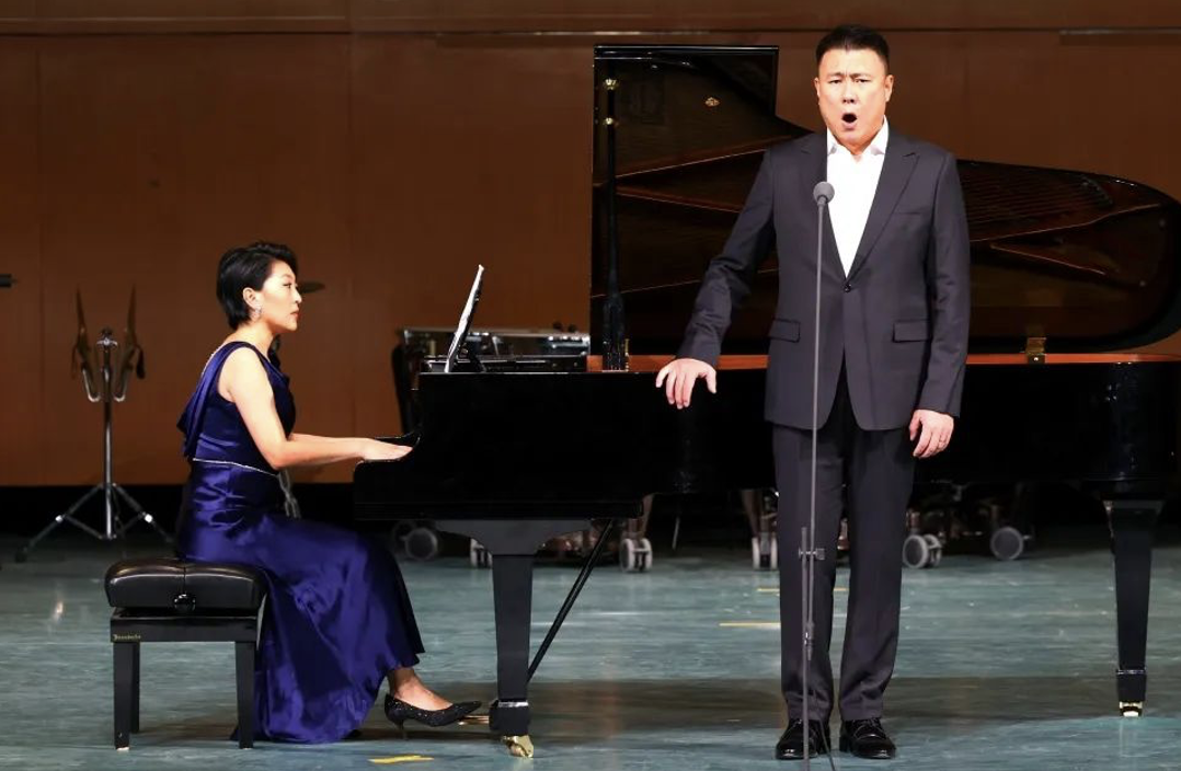 音乐系副主任、教授、博士生导师刘琉和钢琴家、中央音乐学院教授魏小凡奏响的双钢琴作品《一杯美酒主题随想曲》,行云流水般的演奏中充分展现了西部人民幸福美满的生活。