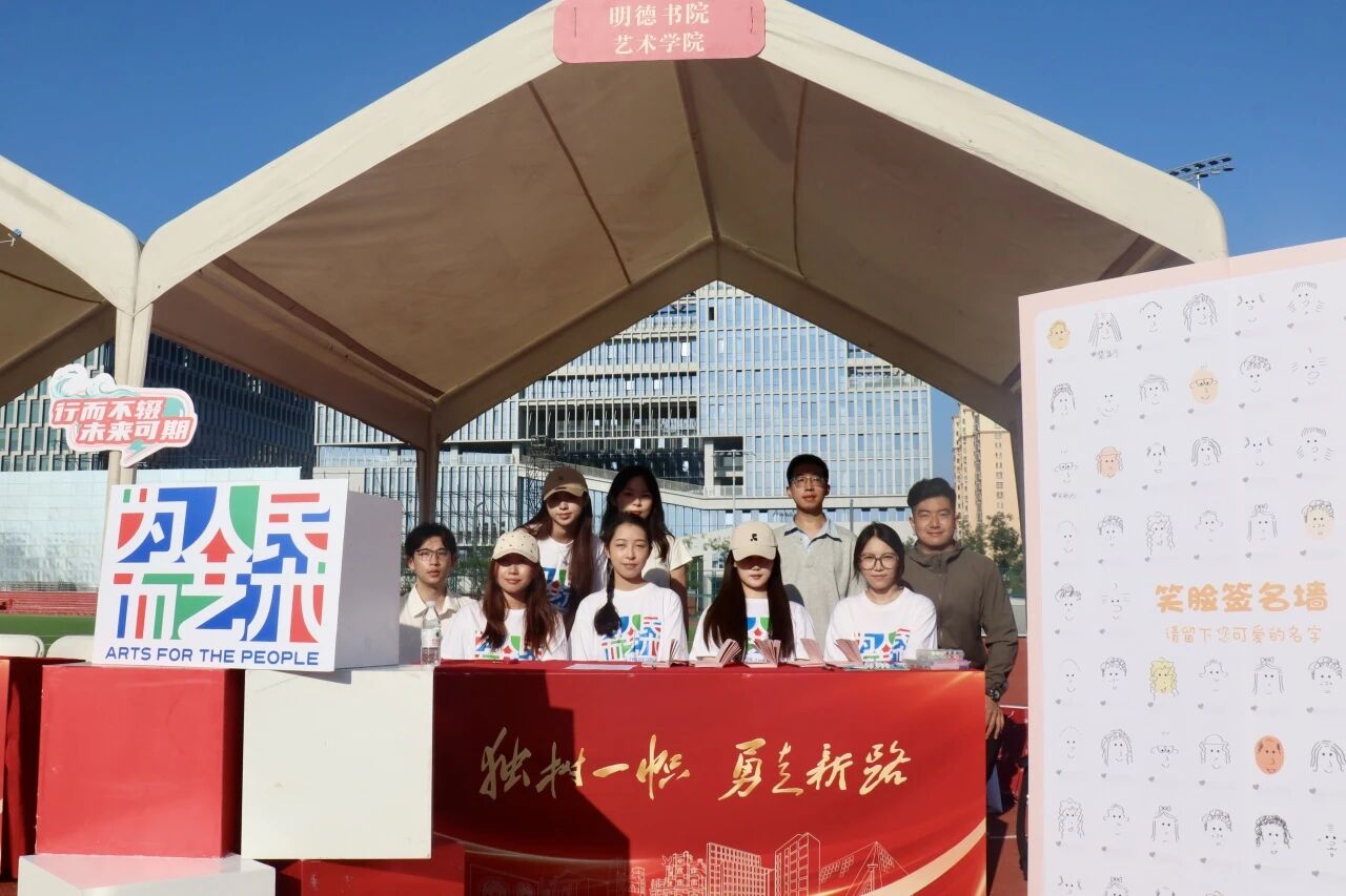 为进一步增强迎新现场的互动性与趣味性,学院在通州校区特别设置了“笑脸签名墙”与“自我肯定夸夸镜”创意打卡区域,中关村校区也设置了新生采访环节,同学们纷纷在签名墙前留下灿烂笑脸和个性签名,并在互动区域愉快交流、拍照留念。轻松活泼的氛围迅速拉近了彼此的距离,也让初入校园的紧张感悄然消散,取而代之的是对未来的满满期待与自信。