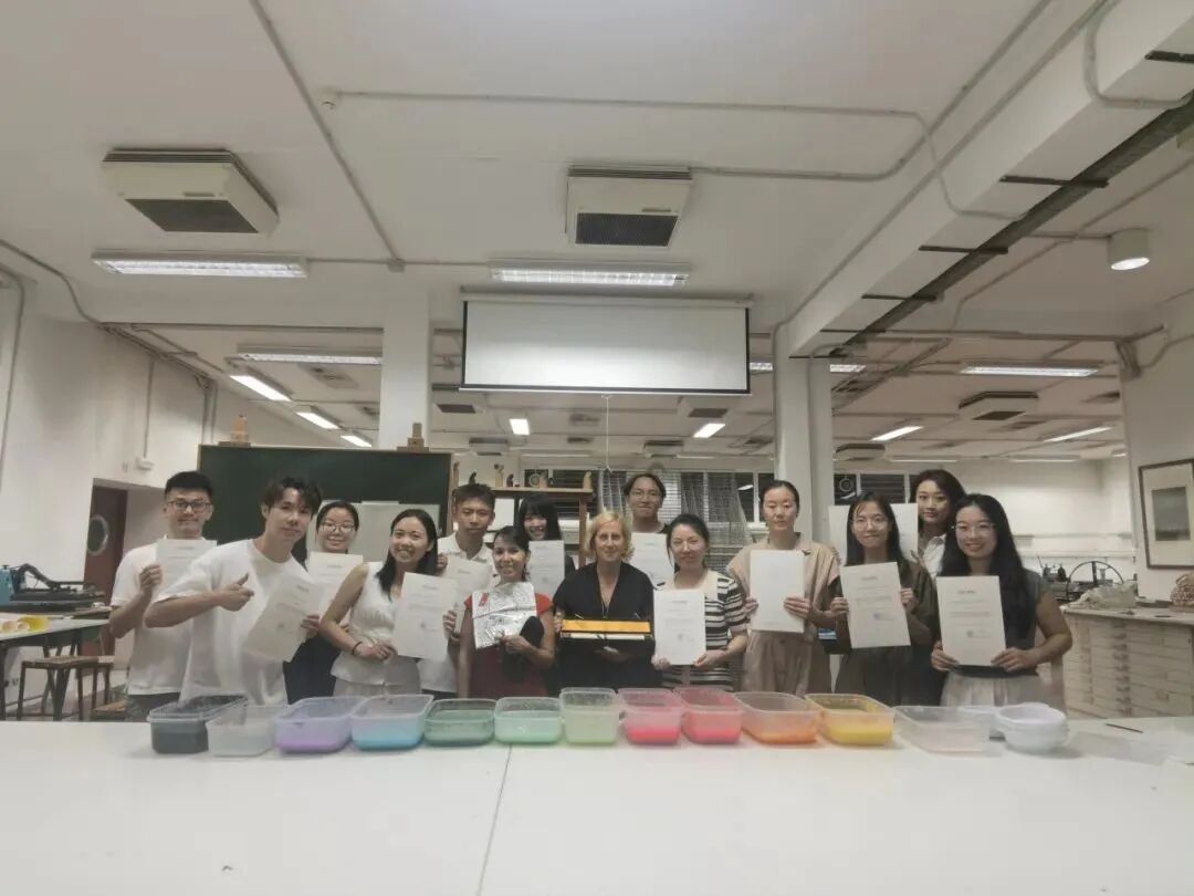 为成员颁发实践证书,调研团则以中国丝巾和山水画卷轴回赠,象征两国艺术交流的丰硕成果。