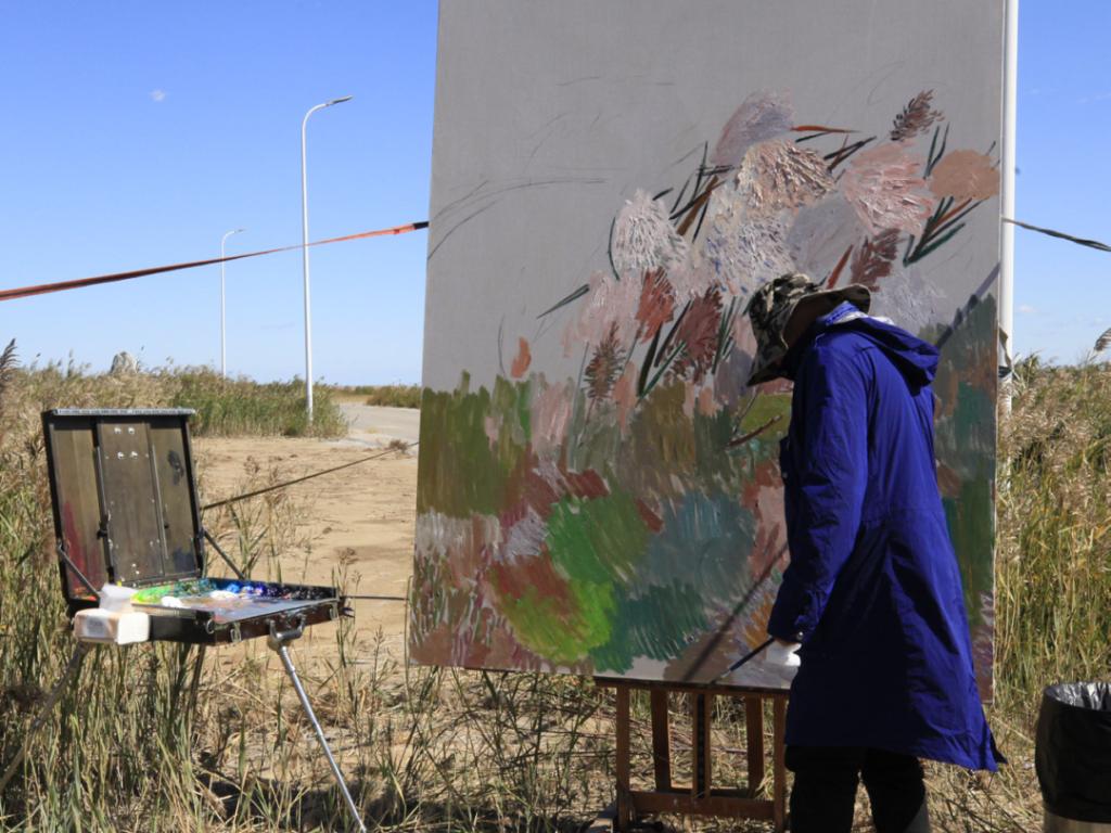 2019年10月,《黄河》全画在山东省东营市黄河入海口展出。