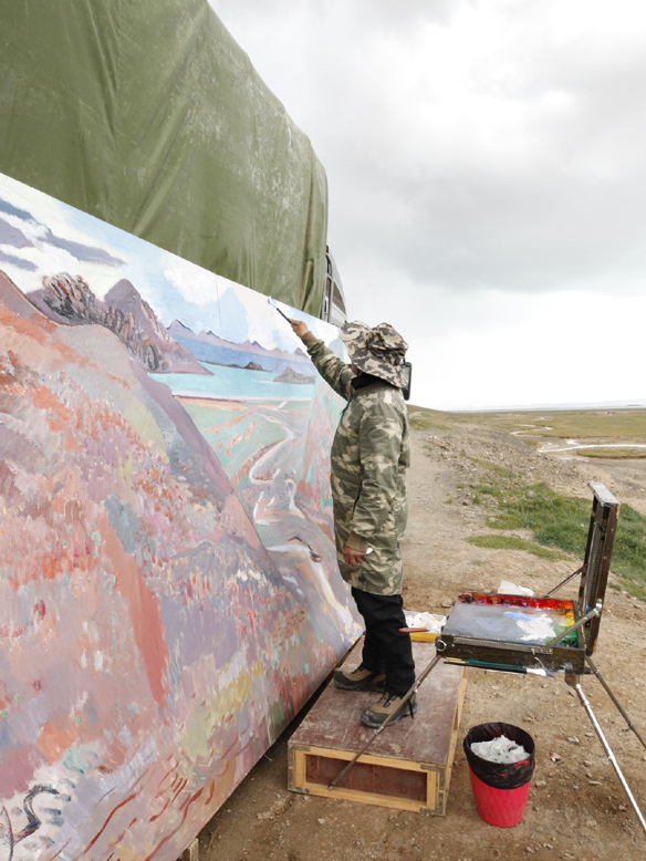 任教期间,王克举坚持“以写生为基,以写意为魂”,带领学生走遍全国近30个省市自治区,在黄土高原、江南水乡、雪域边疆等地的自然景观中探索油画语言的本土化表达。这种“行走式教学”不仅培养了学生的艺术感知力,也让王克举积累了丰富的写生经验。他说:“二十年的风景写生,让我对自然的结构、色彩和空间有了更深的理解,这也让我在构思每一处风景的选点、处理每一块画布的衔接时得心应手。”在人大男人天堂