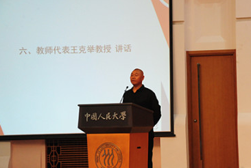 2015届学位授予仪式暨毕业典礼上,王克举寄语同学们:“艺术是人民生活的精神动力、文化传承的重要载体,艺术与时代具有共生关系。作为人大学子,希望大家秉持‘为人民而艺术’的初心,用艺术语言回应社会关切,以美学力量发展文化事业。”
