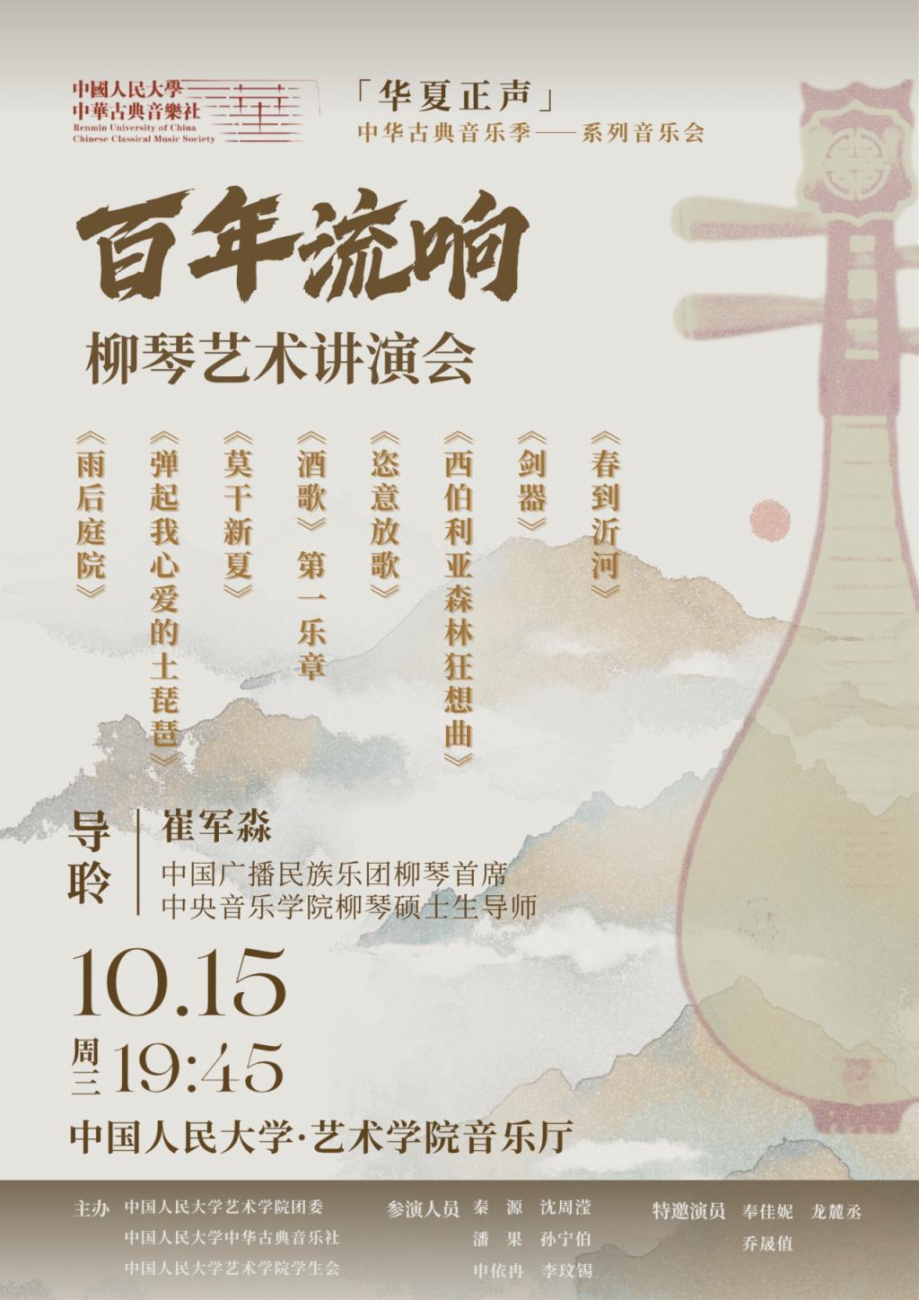 团委与中华古典音乐社联合主办,作为“华夏正声”中华古典音乐季中极具代表性的一场演出,集中呈现了柳琴艺术的百年脉络与当代风貌。从传统经典到现代新创,多首柳琴作品在演奏者的指尖流转之间,勾勒出一幅跨越时空的国乐长卷,展现出柳琴艺术从民间雅韵到舞台新声的完整发展路径。