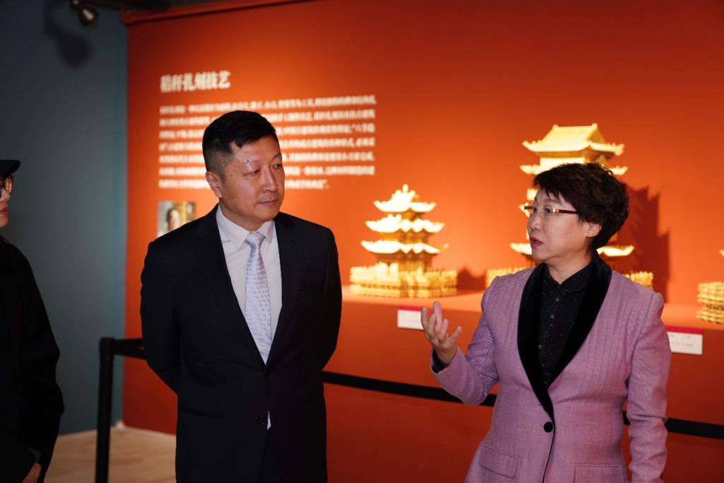 ,参观了“人民艺术·匠心传承”非物质文化遗产主题展。嘉宾们饶有兴致地观摩了非遗项目在当代的创新实践成果,以及非遗数字化保护与活态传承方面的最新研究进展,对学院师生在推动非遗现代化转型中所作出的积极探索给予了高度评价,认为这些成果生动彰显了传统技艺在当代的生命力,有效促进了非遗技艺的创造性转化与创新性发展。