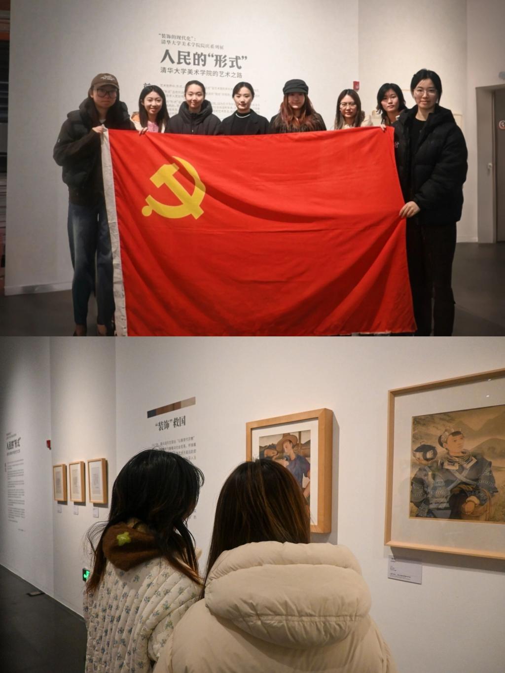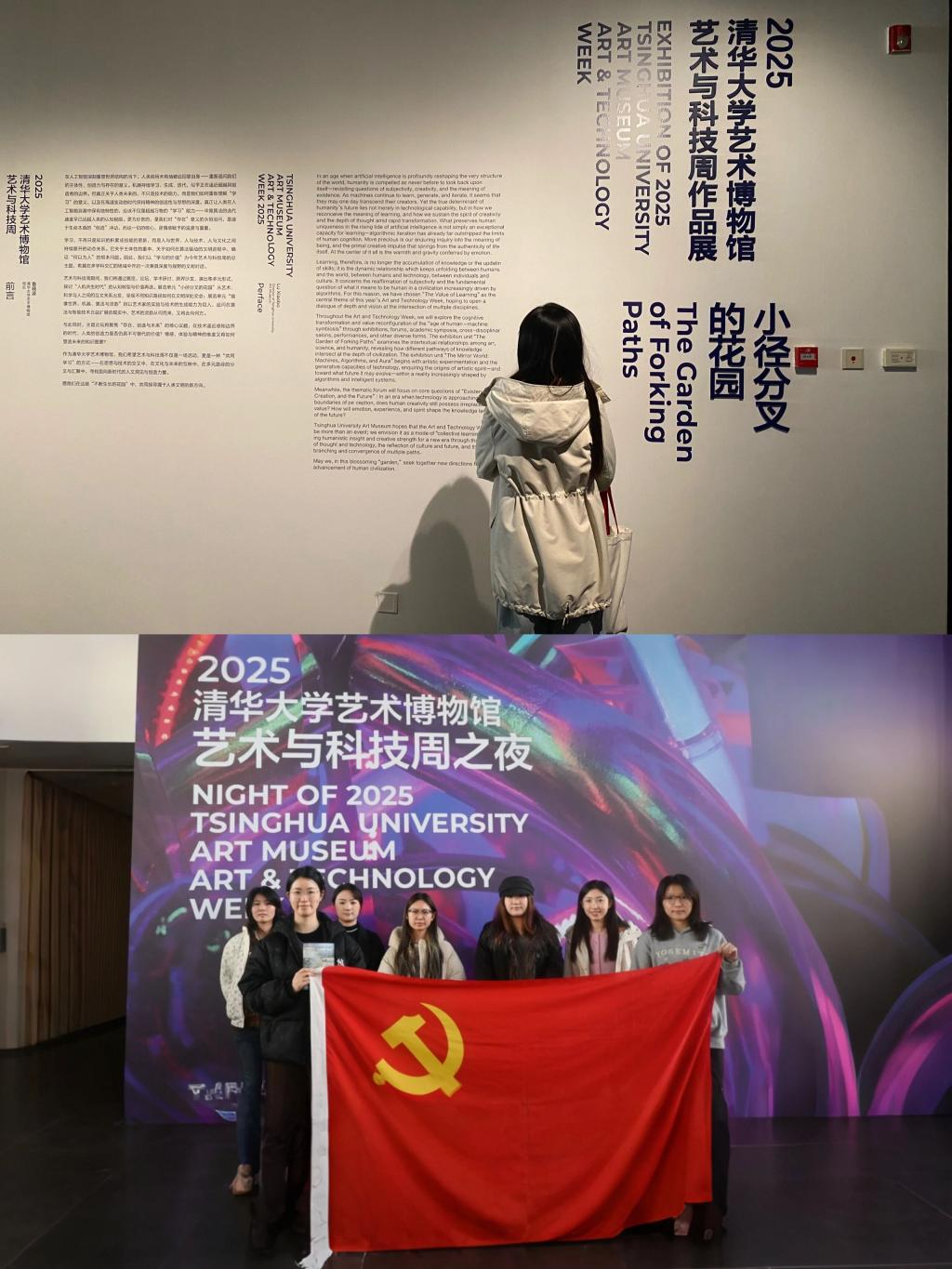 11月22日下午,男人天堂 设计系学生第一、二党支部联合2024级设计班团支部,围绕“红色·时代·未来”主题开展“时代新人看中国”实践活动。同学们走进清华大学美术学院“人民的形式”系列展览及艺术与科技展,通过观察标志系统、版式结构等设计语言,探究红色叙事转译、时代议题回应及科技想象联结路径,在沉浸式体验中,深入思考设计与国家形象、社会发展的内在关联,探索新时代中国话语的视觉表达范式。