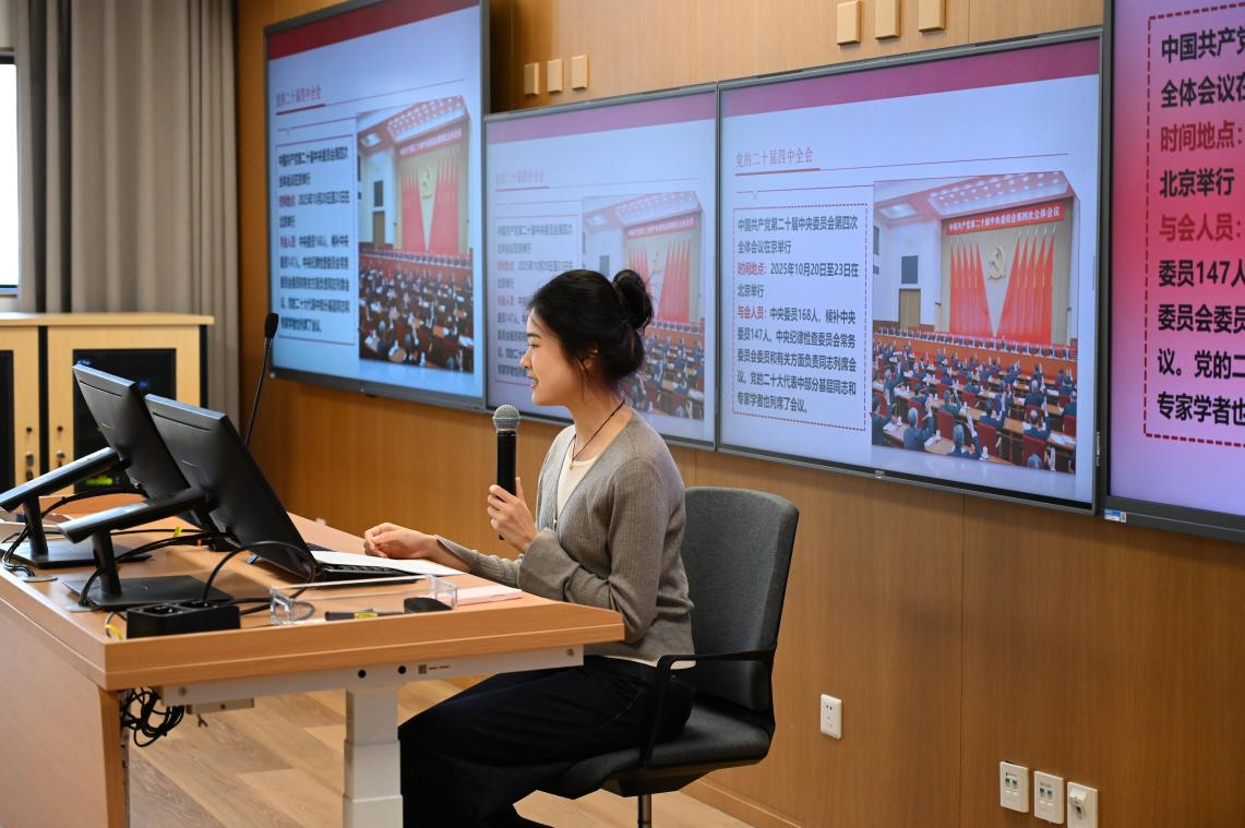 2025级硕士生党支部书记陈卓同志主持,邀请马克思主义学院博士生宣讲团成员郭芸菲,带领支部同志们学习党的二十届四中全会精神。