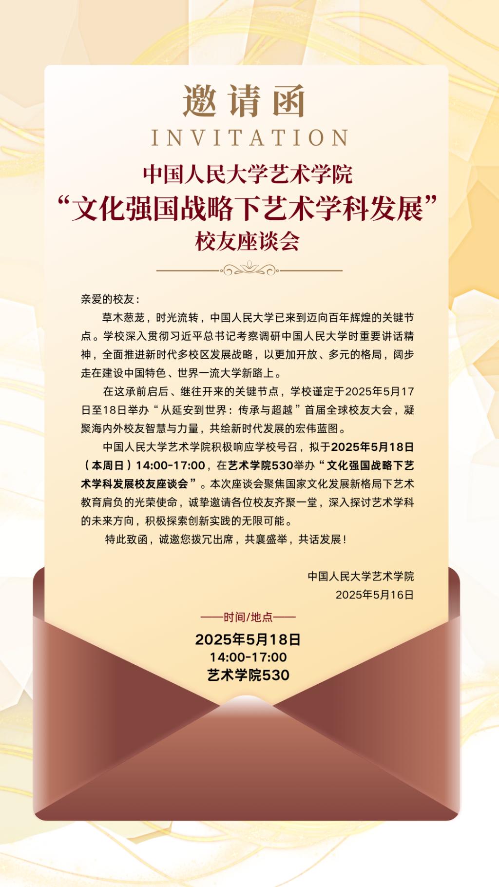 530举办“文化强国战略下艺术学科发展校友座谈会”。本次座谈会聚焦国家文化发展新格局下艺术教育肩负的光荣使命,诚挚邀请各位校友齐聚一堂,深入探讨艺术学科的未来方向,积极探索创新实践的无限可能。