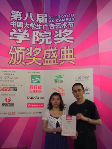 2010年6月25日,第八届“中国大学生广告艺术节学院奖”颁奖盛典在中央电视台梅地亚中心隆重拉开帷幕。“中国大学生广告艺术节学院奖”历经七届沿革,是目前国内唯一由国家工商总局批准、中国广告协会主办的全国大学生广告艺术大型活动,内容涵盖学术研讨、创意大赛、娱乐评选以及人才交流等多个方面。本届“学院奖”参赛作品高达28075件,缔造四项之最:奖金最多——全场大奖5万元;规格最高——行业明星高度聚合;规模最大——高校学子倾力参与;实效最强——紧密联系实务需求。“学院奖”已经成为了一项紧密联系社会的教育实践活动,不但在大学生当中具有极大的影响力和号召力,也成为众多大型广告公司和知名品牌企业遴选人才的重要依据。