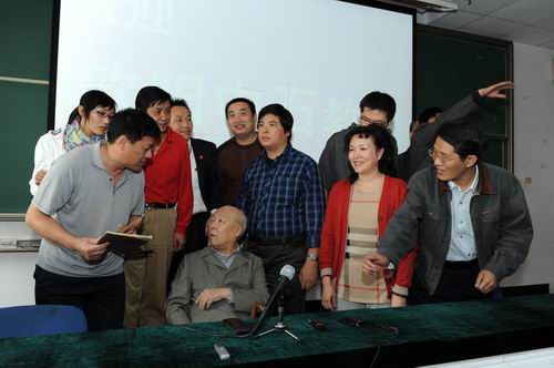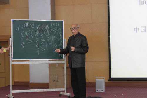 欧阳中石先生应邀来到人民大学,为两期学员作了题为《文化与书法》的学术演讲。他结合自己近期学术研究工作,着重谈了中国汉字和中国书法、书法与中国文化、书法学习中的“学”、专与博等问题,并回答了学员的问题。