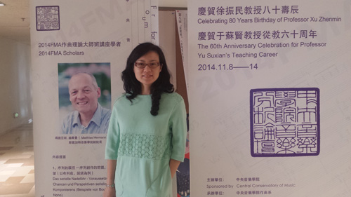 2014年11月8日至14日,我院音乐系刘洁副教授应邀参加了由中央音乐学院主办的“第四届中央音乐学院音乐分析论坛”。并在论坛11月8日的“徐振民教授的创作与教学”的研讨会中作了相关发言,受到与会专家一致好评。