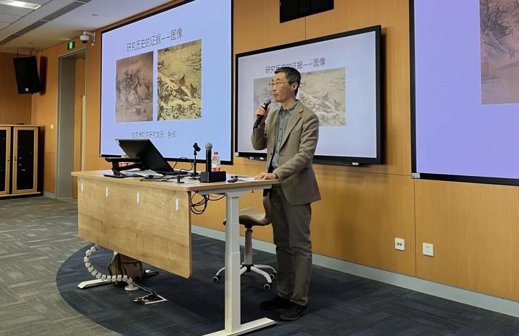 在讲座开始时,余辉老师介绍了图像作为历史证据的重要性,强调图像能够直观呈现历史事件的真实场景,同时也能提供文本无法提供的细节信息,如礼仪制度、社会生活等。图像的作者可以证实历史事实或填补文本材料中的缺失,为历史研究者提供重要的线索。此类图像有两种类型:其一,作者是某个历史事件的见证者,其作品系真迹,或其作品系后人精制的原状摹本,有益于直接、形象地认知当时的历史事实;其二,后世画家以当时的现实生活绘前朝之事,对研究画家的生活时代也是大有裨益的。
