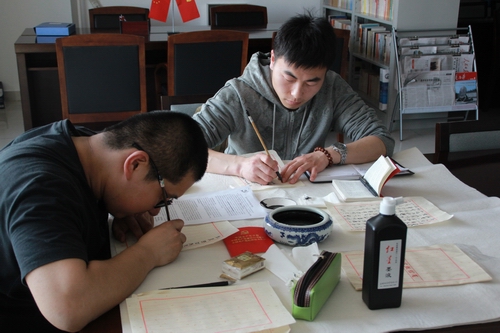 随后,会议进行到党章知识竞赛与书法写党章环节,支部成员李海玉和蒋奎元同学现场以书法的形式抄写党章部分内容,并作为奖品赠予获胜小组。在知识竞赛环节中,支部成员激烈地抢答问题,气氛十分活跃。活动结束后,新闻学院党务秘书刘佳老师进行了点评,她认为此次活动形式新颖,准备充分,主题明确;但同学们在发言讨论时过于书面化,可结合专业多谈谈自己的感受。