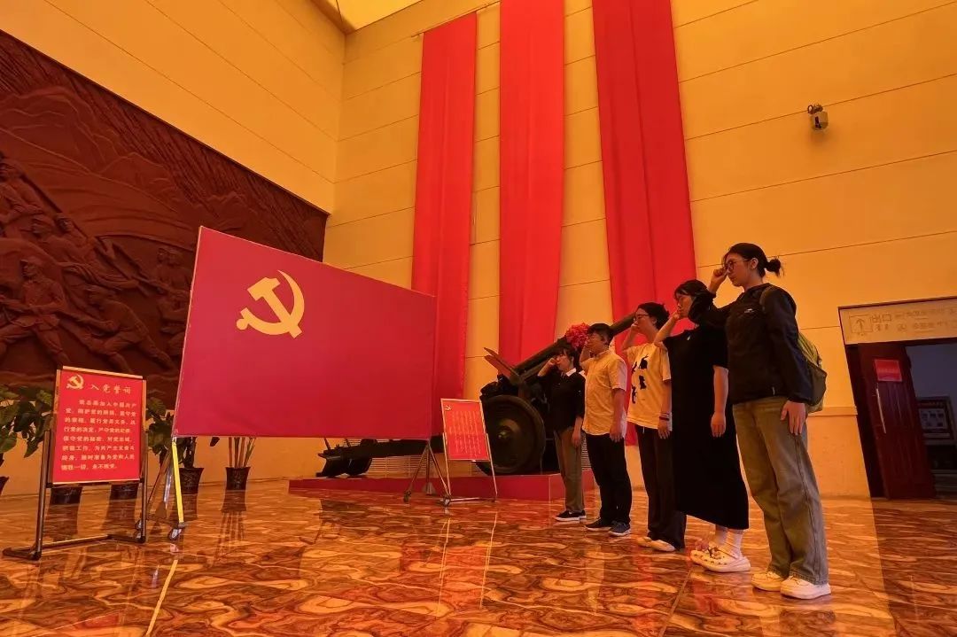 集宁战役是解放战争时期内蒙古自治区域内参战人数最多、影响最大的战役之一,阻止了国民党军抢占东北,捍卫了解放军抗战胜利果实,为解放军同国民党军展开战略决战提供了宝贵的作战经验。集宁战役纪念馆包括“抗战胜利”、“光复集宁”、“集宁争夺战”、“大同——集宁战役”、“解放集宁”、“支援前线”、“缅怀丰功伟绩”7个部分,被中央宣传部命名为“全国爱国主义教育示范基地”。调研团队成员在馆内面向党旗,举起右拳,重温入党誓词,用铿锵的字句、激昂的声音表达了对党无限忠诚与热爱,坚定“听党话、跟党走”的信心和决心。团队成员纷纷表示:没有革命老前辈的艰苦奋斗和无私奉献就没有我们现在的美好生活,我们要继承和发扬红色精神,在新时代、新征程中初心不改、使命不忘,以更高的标准要求自己,用专业所学助力乡村振兴。