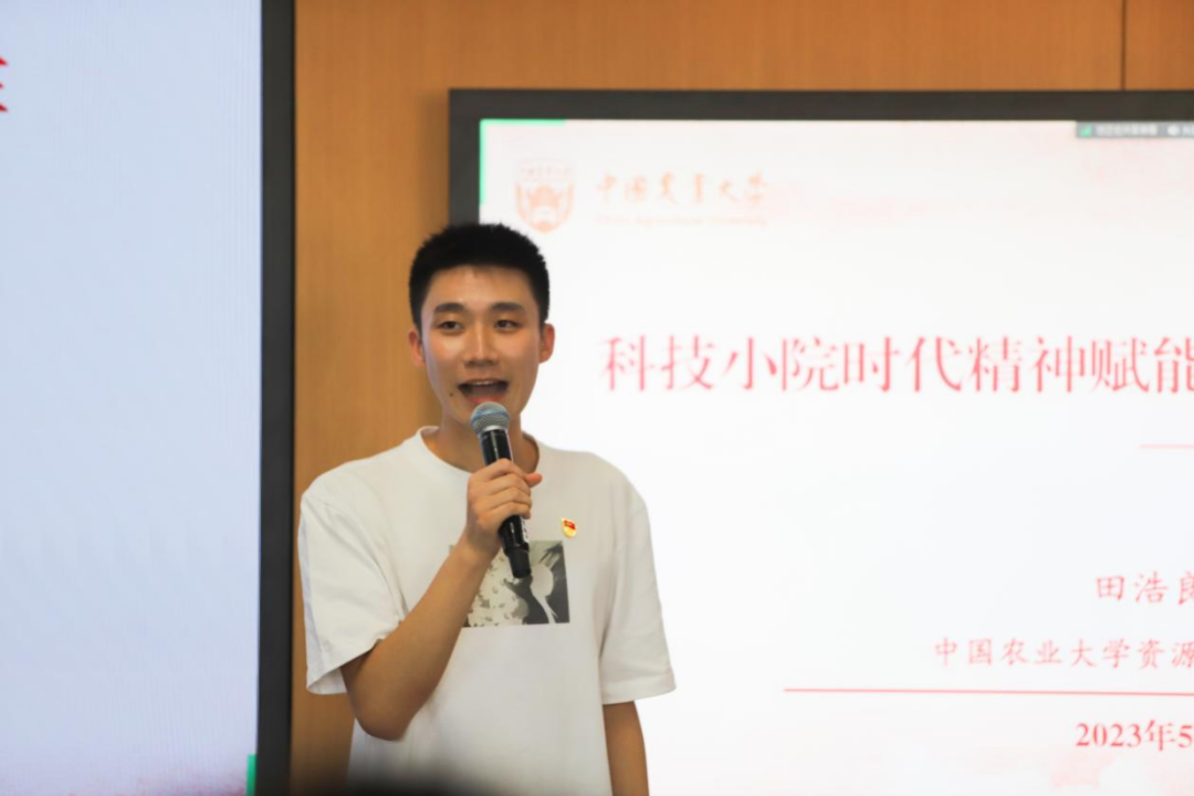 在题为《科技小院时代精神赋能乡村振兴伟大实践》的宣讲中,中国农大资环学院本科生气象党支部书记田浩良表示:我们要深刻领悟习近平总书记重要回信精神的历史意义、时代意义和实践意义,要从“责任、奉献、科学、为民”的曲周精神中寻找科技小院建设发展的历史文化,要深入领会科技小院扎根一线“解民生,治学问”的时代精神,让“小院模式”在助推乡村振兴上做出更大的贡献。我们青年一代更要学会在乡土中国深处“自找苦吃”,把服务乡村振兴伟大实践作为厚植人民情怀、练就强国本领的新起点。