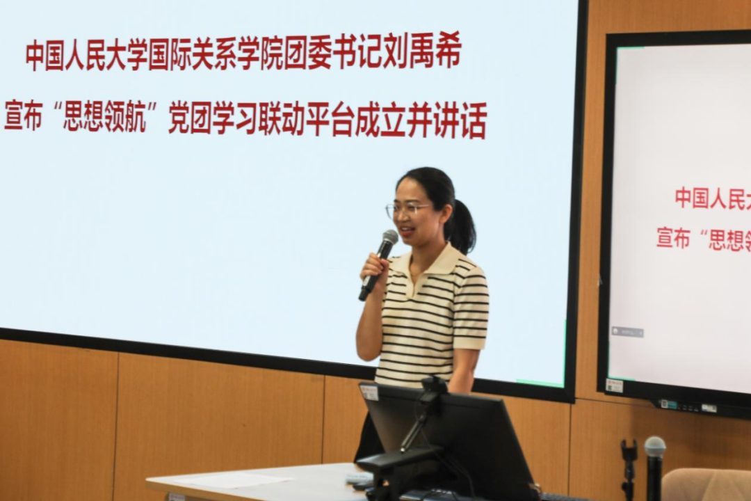 国际关系学院团委书记刘禹希宣布成立并讲话,她指出“思想领航”党团学习联动平台讲话将打造理论学习资源库、精神宣讲资源库、实践学习资源库,是党建引领团建的一次有益尝试,是学习贯彻习近平新时代中国特色社会主义思想的创新举措。