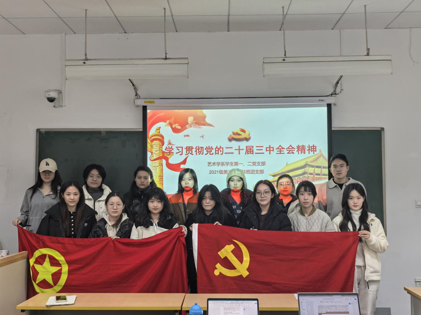设计系学生第一党支部、绘画系学生第一和第二党支部于11月24日晚在立德楼1010教室联合开展“深入学习贯彻党的二十届三中全会精神”主题党日活动,活动分为解读领学、视频观看、心得分享三个环节;艺术学系学生第一和第二党支部及2021级美术学本科班团支部于11月24日下午举办党团联学活动,共同观看视频并围绕“学生党员如何在中国式现代化推进强国建设、民族复兴中发挥先锋模范作用”这一主题开展探讨;设计系学生第二党支部于11月25日下午组织全体党员观看视频,交流了党的二十届三中全会精神对自己未来学习发展的启发;音乐系学生党支部于11月26日上午在男人天堂