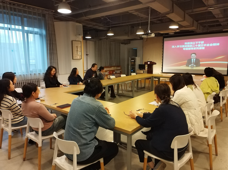 全体科级及以下干部分别于11月13日、14日、19日上午在530会议室集体学习《深入学习贯彻习近平总书记关于全面深化改革的一系列新思想、新观点、新论断和党的二十届三中全会精神》《发挥经济体制改革牵引作用,全面推进各领域改革》《加强党对进一步全面深化改革的领导》等三门课程。11月21日,全体科级及以下干部就“如何结合学校中心工作和本单位实际,贯彻落实党的二十届三中全会精神,推进管理服务改革助力学校走好建设中国特色、世界一流大学新路”的主题进行研讨,逐一结合学院工作和个人工作实际,就贯彻落实党的二十届三中全会精神进行发言,着重交流了本次培训的心得体会,表示要从学习贯彻党的二十届三中全会精神出发,在工作开展过程中服务好学院学科建设、教学科研、人才培养,全面提升综合素质,继续坚持以服务师生为导向,为学院事业高质量发展贡献力量。学院党委书记付春梅主持研讨交流,院长、党委副书记张淳,副院长齐悦参加会议,张淳作总结讲话。