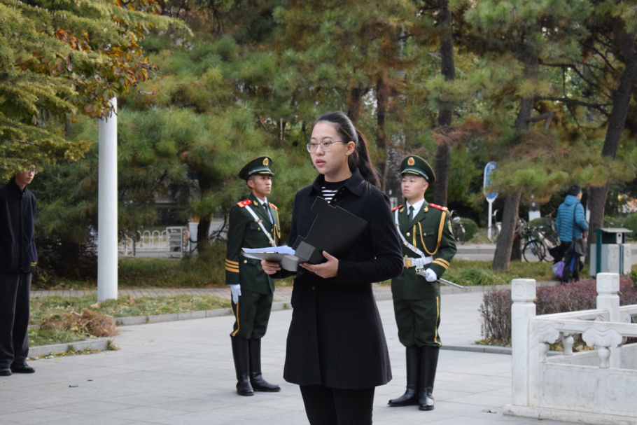 2018级全体本科生进行了升国旗仪式。学院党务秘书吴玥老师参与了此次升旗活动。